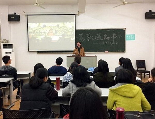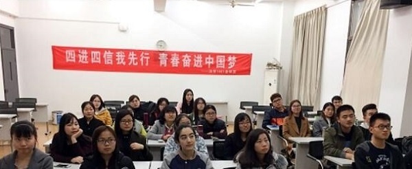 3月21日下午,法学1601班的“四进四信我先行,青春奋进中国梦”主题团日开展了新环节。班级全体同学在英国365集团公司305教室举行了一场别开生面的“选好落点,厚积薄发”主题观影会,以呼应近期班级学风建设活动。