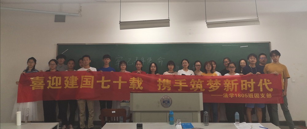 为庆祝建国70周年,进一步培养同学们的爱国之情,引导同学牢记历史使命,积极作为,敢于担当,向中国梦中注入青春能量,法学1805班响应“爱国奋斗正当时,建功立业新时代”系列活动要求,于9月28日在综合楼418教室召开“牢记青年使命,勇担时代责任”主题班会,班级全体同学参与。