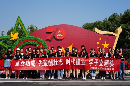 为热烈庆祝中华人民共和国成立70周年,营造爱国爱校的浓厚氛围,引导班级同学牢记青年使命,法学1804班全体同学于9月28日来到橘子洲,在美丽的自然风光中感受毛主席挥斥方遒的激情,感悟祖国70年来的风风雨雨,感恩祖国今日的和平与强盛。