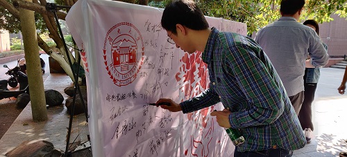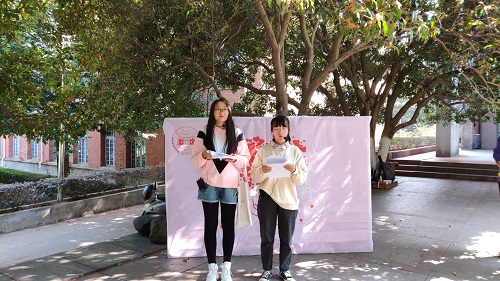 10月22日,为了进一步加强防艾防结核知识的宣传,班级同学走上街头,将精心准备的情景剧和演讲通过路演的形式呈现给更多的游客和同学。活动在英国上市官网365东方红广场一侧举行,几位同学通过情景剧的形式,真实地还原艾滋病患者被歧视的情形。同时街头宣传者对患病者的保护和对艾滋病相关知识的讲述也取得良好的效果。班级同学的演讲更将“青春不染”的活动主题有力地通过具体的事例和生动的阐释传达出来。随着活动进程的不断推进,越来越多的同学和游客被吸引,逐渐聚拢在活动现场,大家有序地在签名板上写下自己的名字和温暖的话语,以此表达自己对艾滋病人和结核病人的支持。同学们还将精心制作的传单分发给路人们,整个活动循序渐进,形式新颖多样,引起热烈反响。