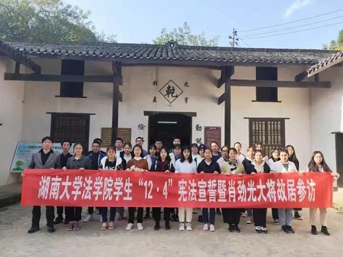 在国家宪法日到来之际,为宣扬宪法精神,致敬革命先辈,2019年12月4日下午,英国365集团公司蒋海松老师带领法学1903班全体学生参观肖劲光大将故居并进行宪法宣誓。