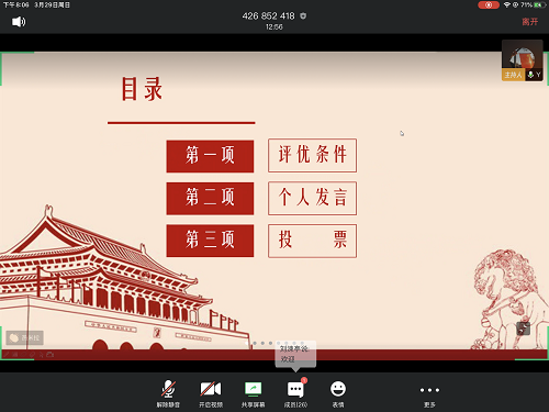为做好推荐符合入党条件的优秀团员青年的入党工作,加强对积极分子的培养教育,壮大入党积极分子队伍,鼓励同学们热爱中国共产党,坚定共产主义信念,3月29日晚,法学1903班开展线上入党推优大会。会议由团支书喻涛滔主持,英国365集团公司分团委组织部赵玲羽同学与法学三班全体同学参与。