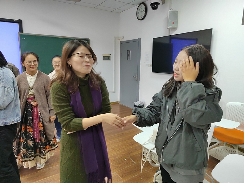 真情流露,肺腑之言。前面游戏环节中遭到淘汰的同学将抽取记录有各种问题的纸条并面对面“质询”王静老师。问题或严肃认真事关学术,或调皮搞怪涉及生活,班主任王静老师一一回应,同学们认真聆听。
