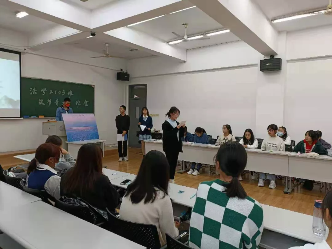 至此,法学2103班“走法学路,承鲲鹏志”主题班会圆满结束。通过此次班会,同学们明确了前进方向,对自己的未来有了更加清晰的认识。希望同学们可以将振兴中华之责任置于肩上,承载鲲鹏扶摇直上之志,走好法学之路,弘法明理,努力成长为未来的法治栋梁。