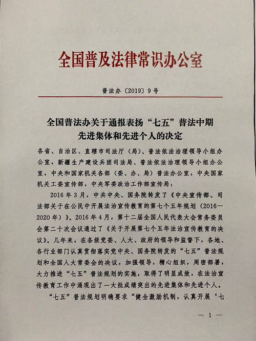 2016年3月,中共中央、国务院转发了《中央宣传部、司法部关于在公民中开展法治宣传教育的第七个五年规划(2016-2020年)》;2016年4月,第十二届全国人民代表大会常务委员会第二十次会议通过了《关于开展第七个五年法治宣传教育的决议》。几年来,各地、各行业部门认真贯彻落实“七五”普法规划,取得了明显成效,在法治宣传教育工作中涌现出了一大批成绩突出的先进集体和先进个人。全国普法办要求受表扬的先进集体和先进个人要珍惜荣誉,再接再厉,更好地发挥典型示范带头作用,在普法工作中再创佳绩,并希望各地区、各部门要以受到表扬的先进集体和先进个人为榜样,继续扎实做好全民普法工作,大力弘扬社会主义核心价值观,努力营造全社会良好的法治环境作出新的更大贡献。