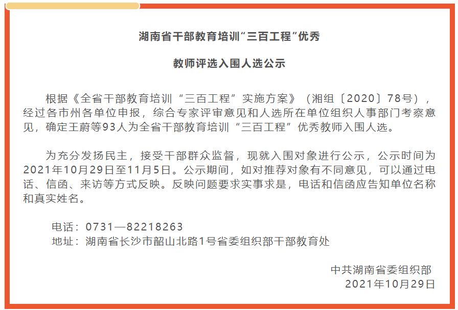 (湖南省干部教育培训“三百工程”优秀教师部分入选名单)