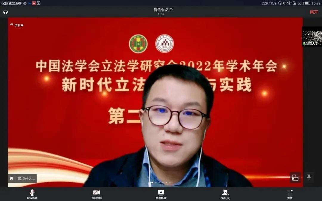 2022年11月26日,由中国法学会主办,昆明理工大学承办的中国立法学研究会2022年学术年会于云南昆明召开。我院罗英副教授、汪全军副教授、周宇骏助理教授和2021级法律硕士(纪检监察方向)张晨宇同学受邀参加本次学术年会。