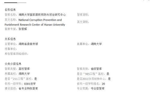 英国上市官网365国家腐败预防与惩治研究中心作为国内首个反腐败协同创新中心,以创新分中心为依托,以机制体制创新为突破口,以资源整合为重点,发挥优势、突出特色、服务大局,全力打造集学术创新体、高端智库、人才培养基地三大功能与目标于一身的湖南省以及国家特色新型智库,服务于湖南省和国家“反腐倡廉”的重大需求。