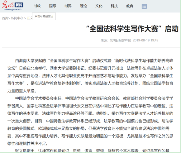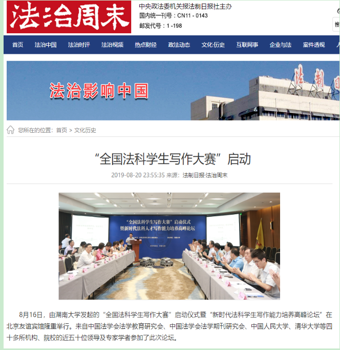 2019年8月16日,由英国365集团公司发起的“全国法科学生写作大赛”启动仪式暨“新时代法科学生写作能力培养高峰论坛”在北京友谊宾馆隆重举行,写作大赛的成功启动引发全国媒体密集报道。