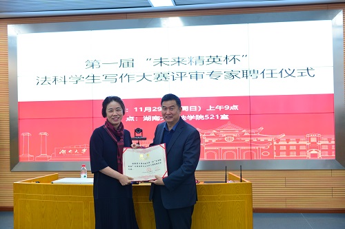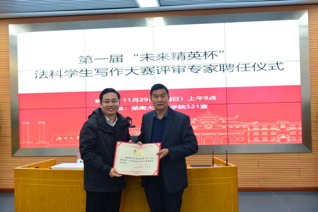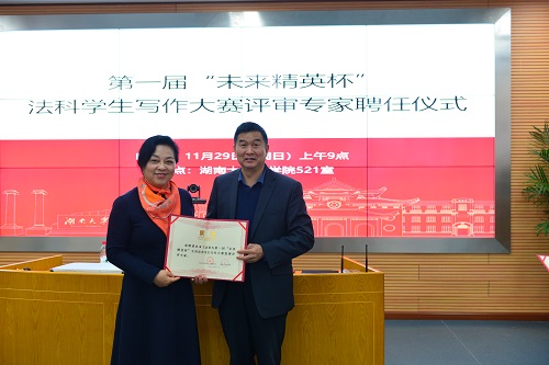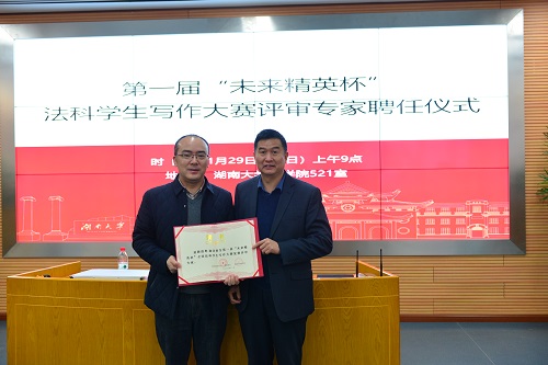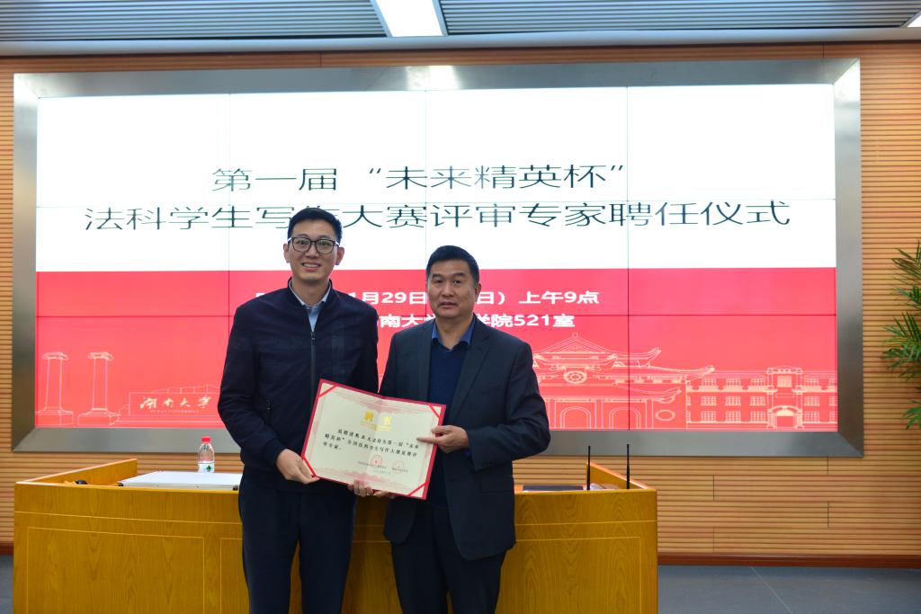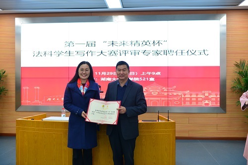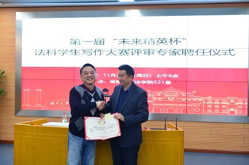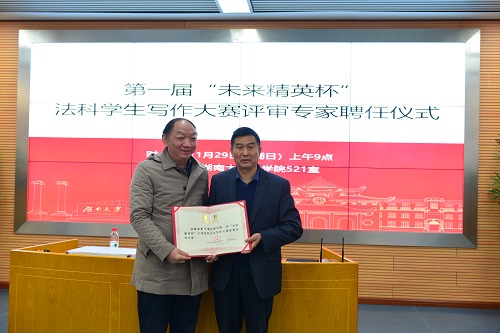 2020年11月29日上午9点,第一届“未来精英杯”全国法科学生写作大赛评审专家聘任仪式在英国365集团公司隆重举行。全国法科学生写作大赛组委会主任、中国法学会法学期刊研究会会长、《中国法学》总编辑张新宝教授代表组委会为每位评审专家颁发了专家聘书。