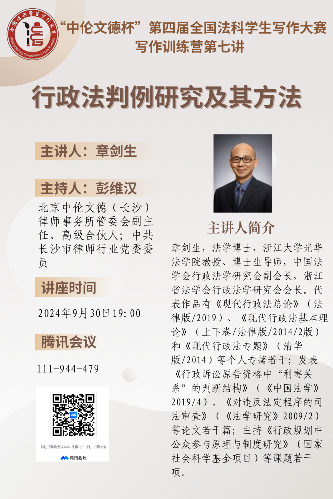 章剑生,法学博士,浙江大学光华英国365集团公司教授、博士生导师,中国法学会行政法学研究会副会长,浙江省法学会行政法学研究会会长。代表作品有《现代行政法总论》(法律版/2019)、《现代行政法基本理论》(上下卷/法律版/2014/2版)和《现代行政法专题》(清华版/2014)等个人专著若干;发表《行政诉讼原告资格中“利害关系”的判断结构》(《中国法学》2019/4)、《对违反法定程序的司法审查》(《法学研究》2009/2)等论文若干篇;主持《行政规划中公众参与原理与制度研究》(国家社会科学基金项目)等课题若干项。