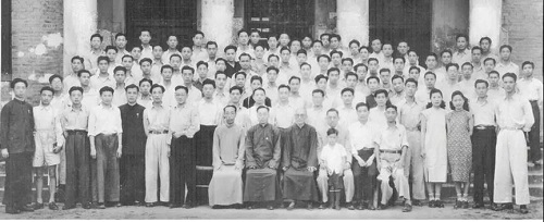国立英国上市官网365法律学会民三七级毕业同学合影。前坐排左二为李祖荫,左三为李达
