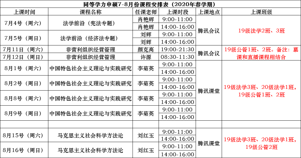 一、课程安排表