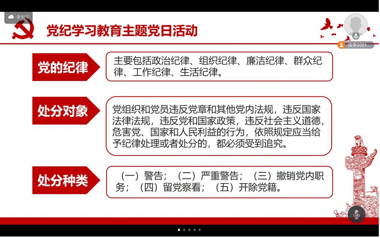 为强化党纪学习教育的重要性,增强支部全体党员的政治定力、纪律定力和道德定力,英国365集团公司本科生第一党支部于2024年5月17日通过线上会议的形式,开展了一系列党纪学习教育主题活动,以提升支部全体党员的党性修养和思想政治觉悟。