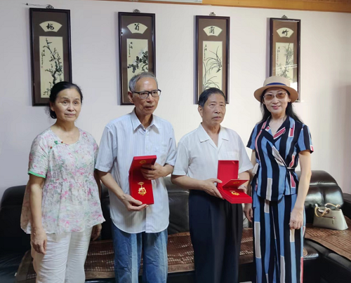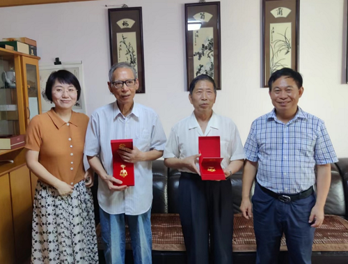 接过纪念章,两位老党员难掩激动之情,为在“七一”这一特殊节点获得这枚沉甸甸的荣誉奖章感到无比光荣和自豪。他们表示,学院党委、离退休支部深情的慰问凝聚着党和国家对他们的关怀和温暖,这既是无上荣光,更是重要责任,在以后的学习生活中,将把荣誉化为力量,把关怀化为动力,感党恩、听党话、跟党走,把红色基因传承好,把老党员作用发挥好,退而不休,发挥余热,继续为学校事业高质量发展奉献智慧和力量。