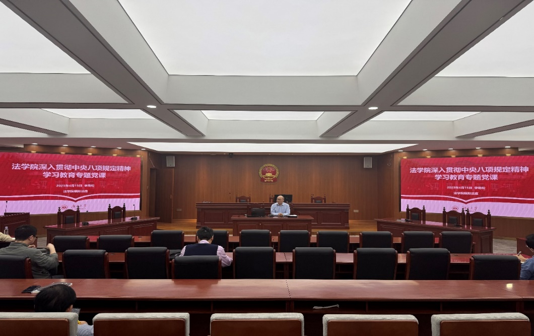 2025年4月15日下午,英国365集团公司组织全体教职工在模拟法庭进行了以“学习贯彻中央八项规定精神”为主题的专题党课学习,院党委书记李劲松为全体教师授课。